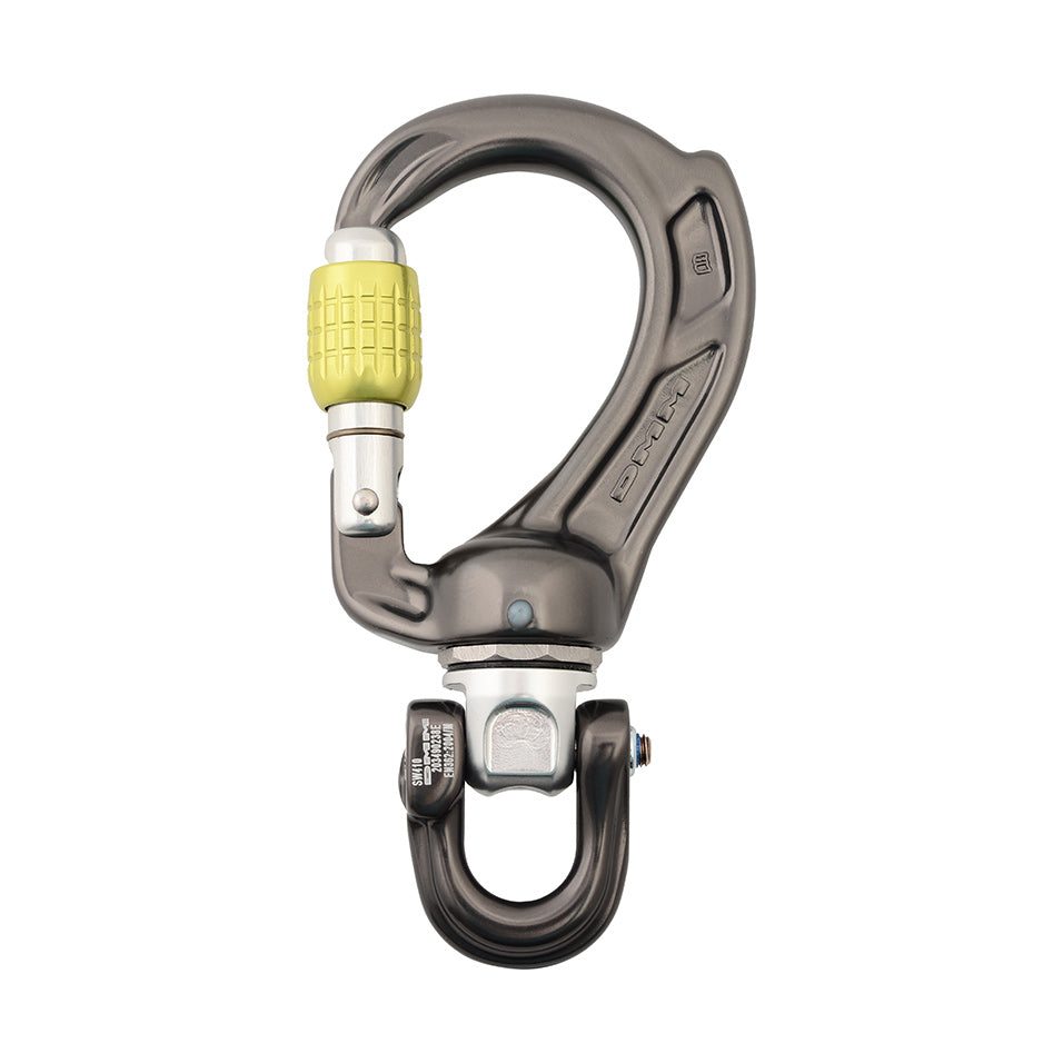 Featuring a textile-friendly, configurable attachment eye, an ultra-short gate, a broad and smoothly contoured load path, and a wide gate opening, the Director Swivel Boss is designed for flexible integration. It can be retrofitted to pre-stitched or swaged lanyard assemblies, or paired with DMM Linkits to create ultra-short, connectable systems. When combined with the DMM Director Yoke, it delivers a highly effective swivelling and pivoting twin-connector solution.