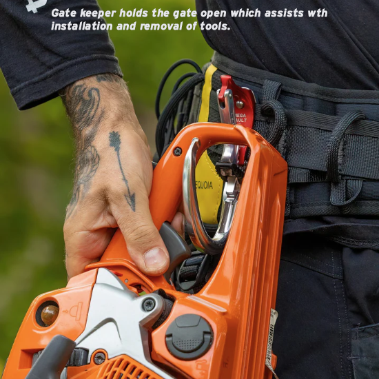 Designed for flexibility, the Mega Vault can be retrofitted to most harnesses and tool belts. It features a wide storage ledge for easy gear access and a replaceable gate keeper that holds the gate open for smooth tool attachment and removal. It can even be mounted on vehicles or work bags, offering safe, organized storage wherever you need it.
