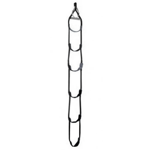 The Yates Rescue Ladder offers the opportunity to scale heights using standard aid techniques. Multiple ladders can be linked together to increase length. Made of 1" webbing, the six steps are reinforced with stiffeners which make them 4.4cm wide. A built-in spreader bar ensures the steps remain open without causing foot pinching, and there's a wrist loop integrated into the top carabiner loop.